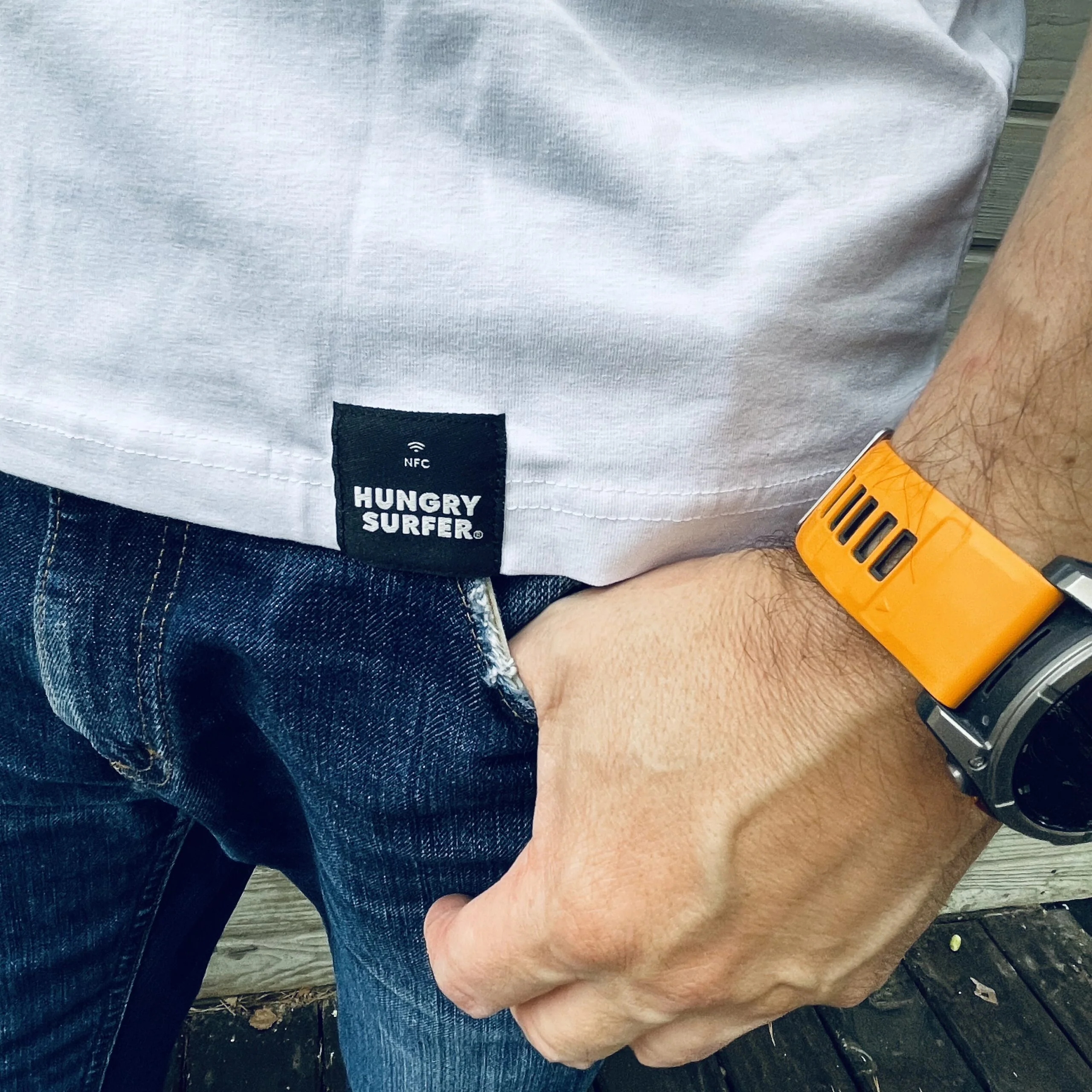 STAY SMART – tap badget & connect – simply touch your phone to the Hungry Surfer logo badge