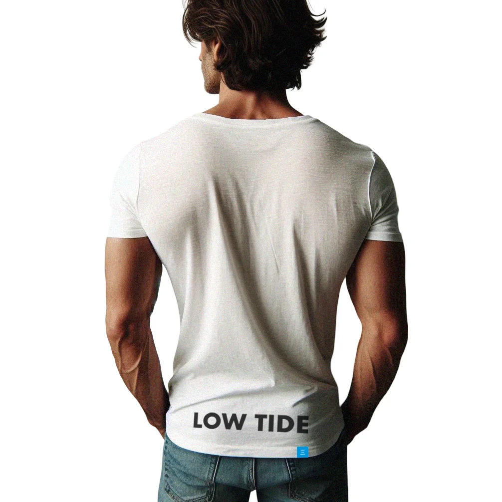 White T-shirt with a large LOW TIDE logo on the back.