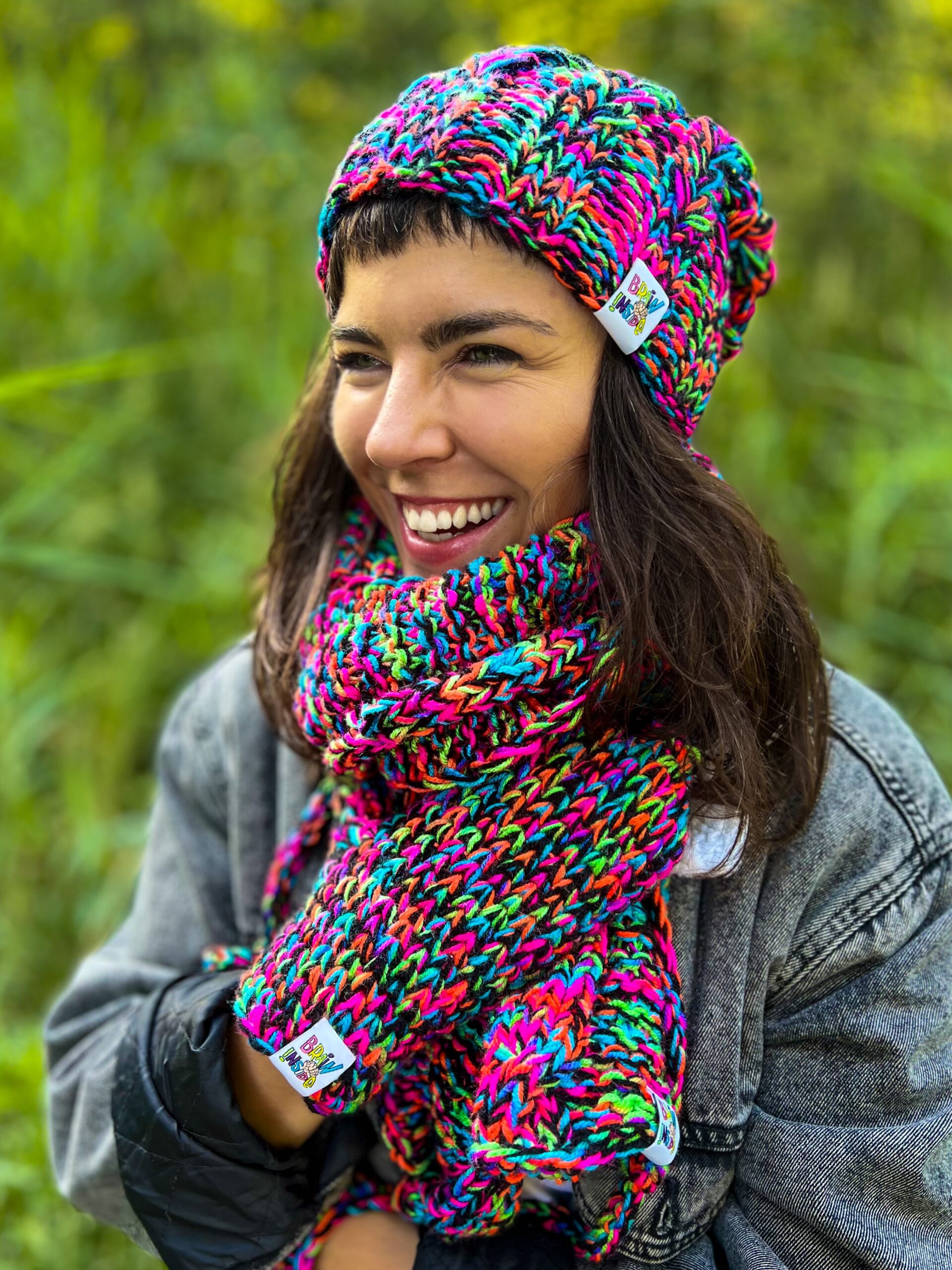 34% merino and 66% acrylic – making it soft, warm, and practical all at once.