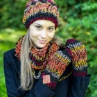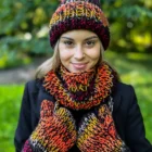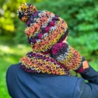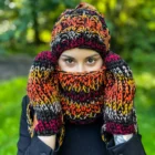 This scarf is handmade by senior women and is made from a blend of 50% merino and 50% acrylic,