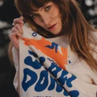Grafika, w kolorach pomarańczowym i niebieskim wykonana przez polskiego artystę sokuy_illust. Naniesiona sitodrukiem dzięki czemu zostanie z Tobą na dłużej.