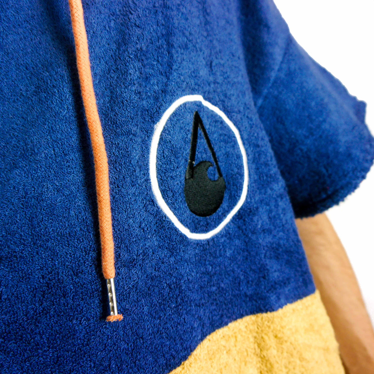The WAVE HAWAII Ponchino Flow is an elegant, navy and mustard poncho. This bamboo surf poncho is a MUST HAVE for every surfer.